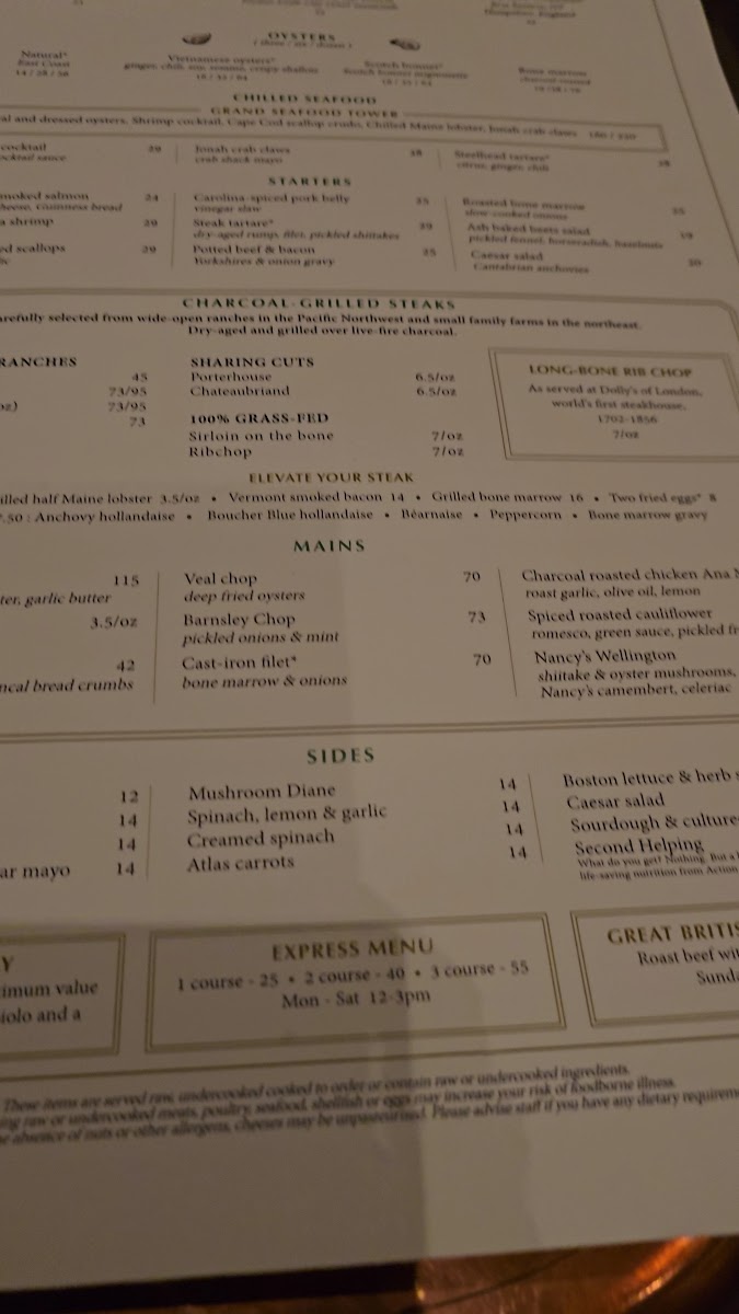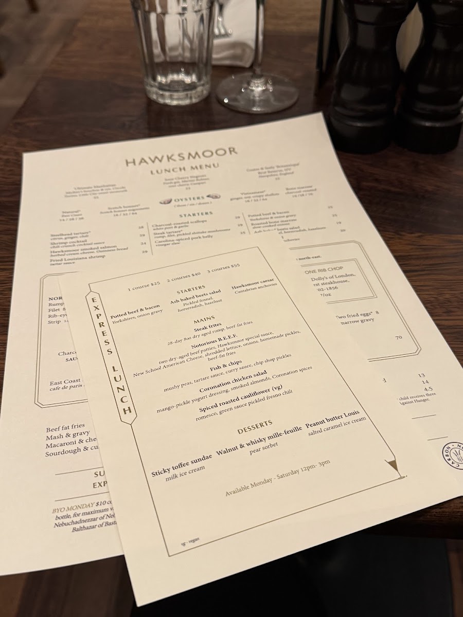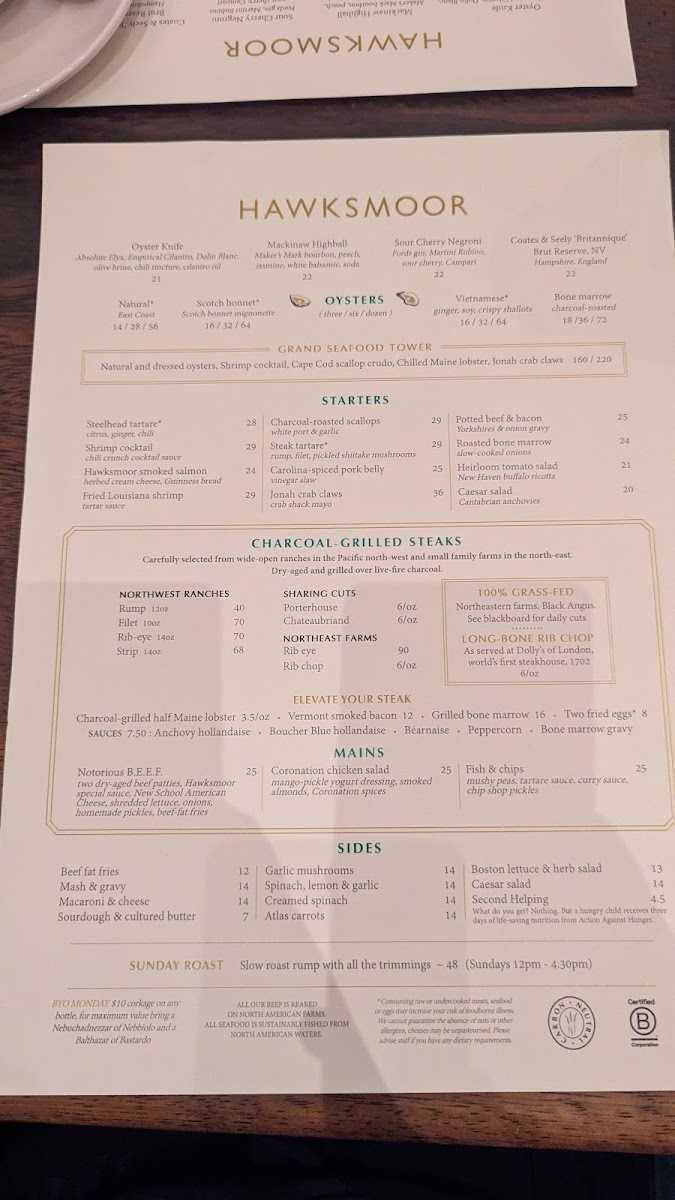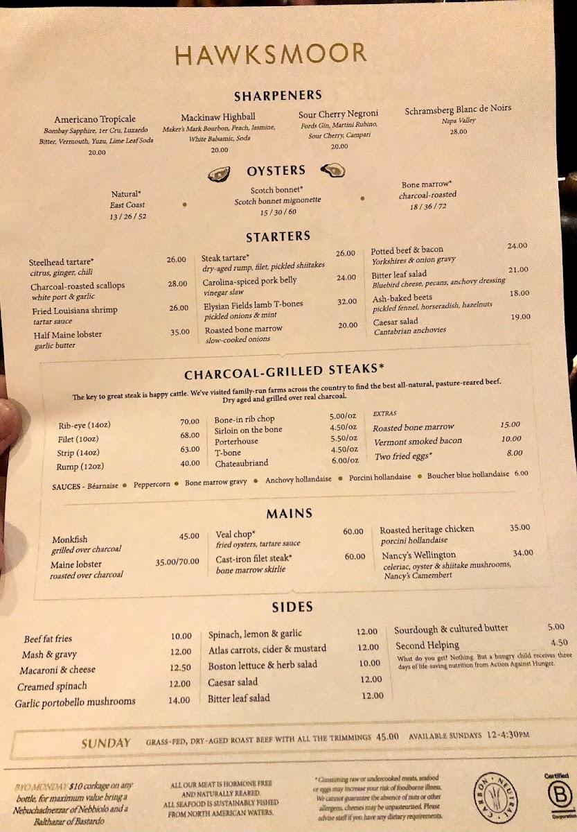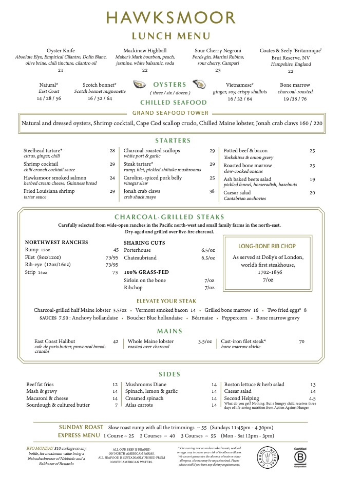 Hawksmoor NYC Menu